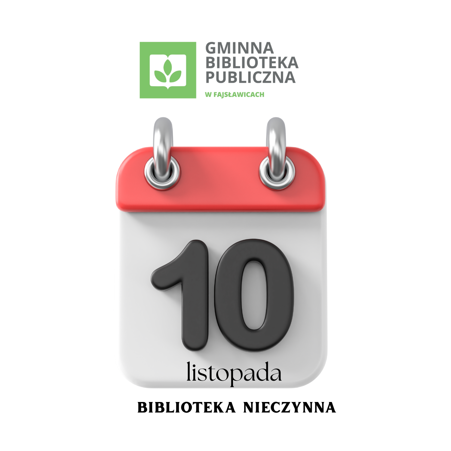 Informujemy, że 10 listopada 2025r. został ustalony dniem wolnym od pracy za dzień świąteczny 1 listopada 2025r. przypadający w sobotę. Gminna Biblioteka Publiczna w Fajsławicach oraz Filia Biblioteczna w Siedliskach Drugich będzie nieczynna.